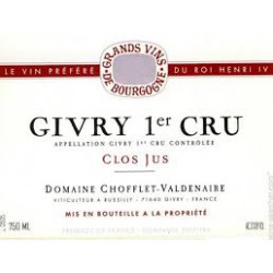 Domaine Chofflet-Valdenaire Givry 1er Cru 2013 Clos JusPrésentation du produit Le Givry 1er Cru Clos Jus 2013 du Domaine Chofflet-Valdenaire est un vin rouge issu de la prestigieuse appellation Givry, en Côte Chalonnaise. Ce vin est composé exclusivement de Pinot Noir, cultivé sur des parcelles de vignes anciennes situées sur des sols argilo-calcaires....