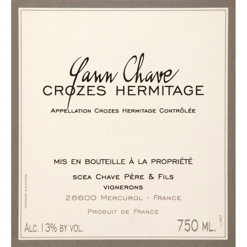Le Crozes-Hermitage Rouge 2017 de Yann Chave est un vin riche et élégant, 100% Syrah. Il offre des arômes de fruits noirs mûrs, de poivre et d'épices, avec une bouche ample et structurée. Ses tanins fins et sa longue finale en font un vin équilibré et raffiné, idéal pour accompagner des viandes grillées ou des fromages affinés. Un vin à savourer dès aujourd'hui ou à conserver quelques années.