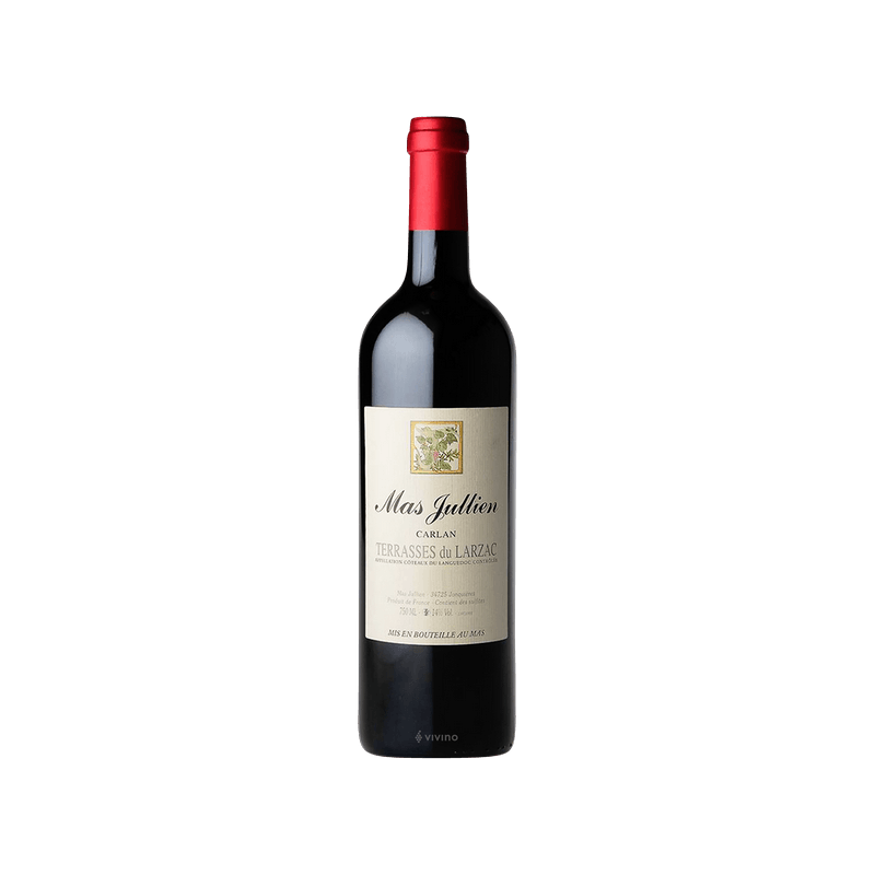 Le Carlan 2019 du Mas Jullien est un vin rouge des Terrasses du Larzac, composé de Syrah, Grenache, Mourvèdre et Carignan. Il offre des arômes de fruits noirs, de garrigue et d’épices, avec une bouche structurée, ronde et des tanins fins. Ce vin puissant et élégant a un potentiel de vieillissement de 5 à 10 ans. Note Parker : 91/100. À déguster avec viandes rôties ou gibier.