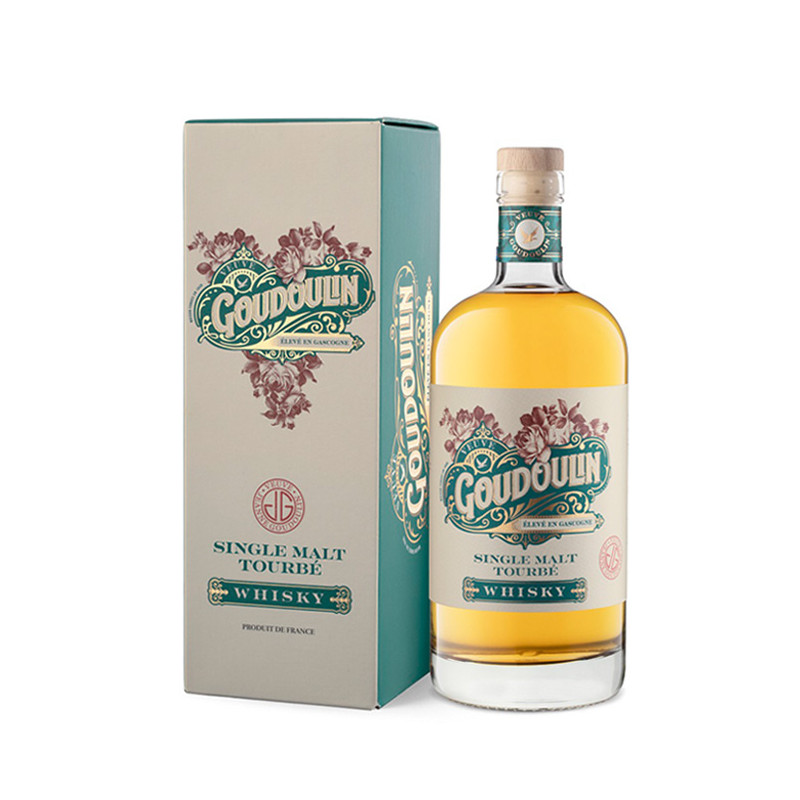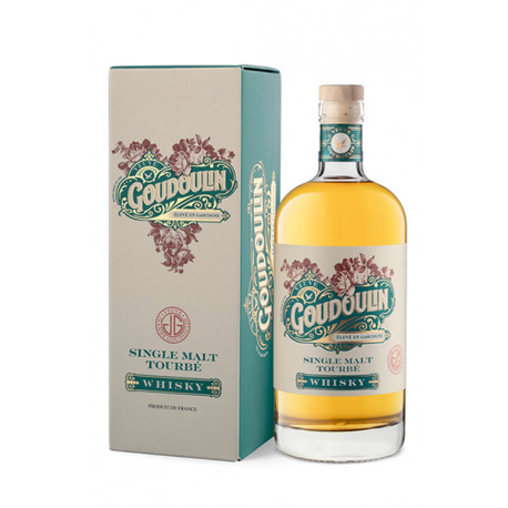 Le Whisky Single Malt Tourbé Veuve Goudoulin est une distillation artisanale de qualité, produite par la maison Veuve Goudoulin, une marque qui se distingue par ses méthodes traditionnelles et son expertise dans l'élaboration de whiskies fins. Ce Single Malt est issu de l'assemblage de malt pur, avec un profil tourbé prononcé, caractéristique des whiskies de la région écossaise de l'Île de Skye ou d'Islay, réputée pour ses arômes fumés et iodés.
