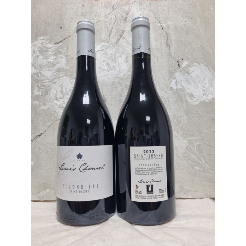 | Type | Le Domaine Louis Chomel - Saint Joseph Rouge 2022 - Tolondière présente des arômes de fruits noirs mûrs, poivre noir, garrigue, et des touches florales. En bouche, il est structuré et tannique avec une finale longue et minérale. |