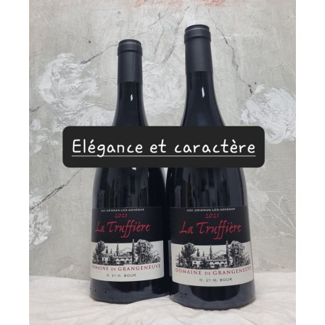 Le La Truffière Rouge 2021 du Domaine de Grangeneuve est une cuvée emblématique de Grignan-les-Adhémar, rendant hommage aux truffières de la région. Ce vin, issu d’un assemblage précis de Syrah et de Grenache, offre une expression intense du terroir avec une belle structure, une profondeur aromatique et une touche de finesse caractéristique des grands vins du Rhône.