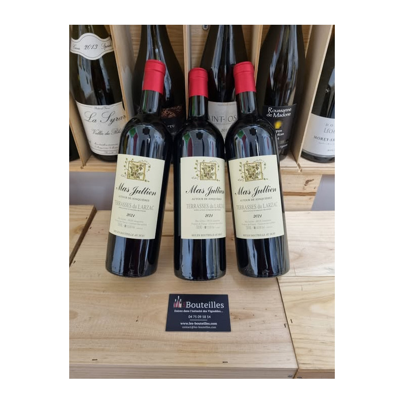 Autour de Jonquières 2021 du Mas Jullien est un vin rouge des Terrasses du Larzac. Issu d’un assemblage de Syrah, Grenache, Mourvèdre et Carignan, il offre des arômes de fruits noirs, de garrigue et d’épices. En bouche, il se caractérise par une belle structure, des tanins fins et une longue persistance. Note Parker : 91/100. À déguster avec viandes grillées ou gibiers.