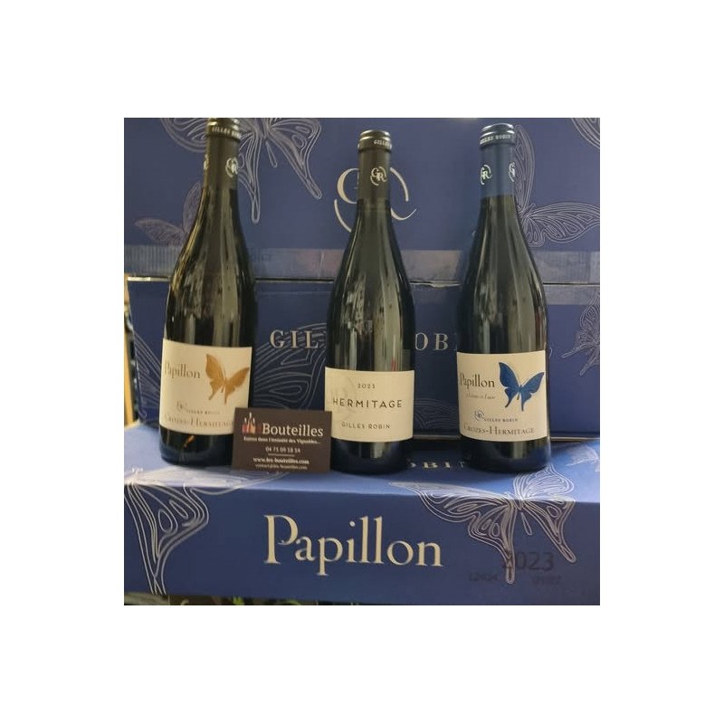 Le Crozes-Hermitage Blanc 2024 "Papillon" de Gilles Robin est un vin élégant et aromatique, issu des cépages Marsanne et Roussanne. Ce blanc frais et équilibré reflète parfaitement le terroir granitique de l’appellation, avec une belle expression fruitée et florale.
