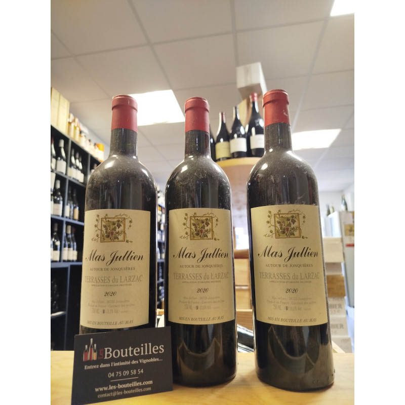 Autour de Jonquières 2020 du Mas Jullien est un vin rouge des Terrasses du Larzac. Issu d’un assemblage de Syrah, Grenache, Mourvèdre et Carignan, il offre des arômes de fruits noirs, de garrigue et d’épices. En bouche, il se caractérise par une belle structure, des tanins fins et une longue persistance. Note Parker : 91/100. À déguster avec viandes grillées ou gibiers.
